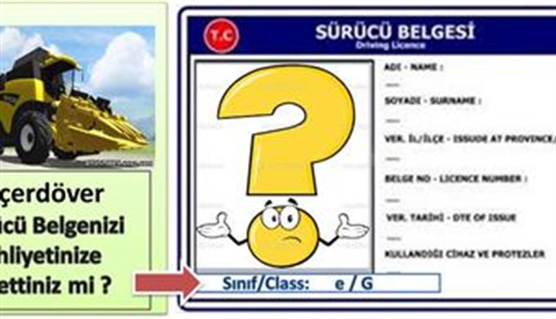 Bu itibarla 29.05.2013 tarihinden önce operatör belgesi alıp da henüz ehliyete işletmeyen belge sahiplerinin belgelerinin geçerlilik süresi 29.05.2015 tarihinde sona ereceğinden ve operatör belgesi ile karayolunda araç kullanamayacaklarından belge sahiplerinin (biçerdöver, iş makinesi vb.) belgelerini ehliyetlerine işletmeleri önemle duyurulur.